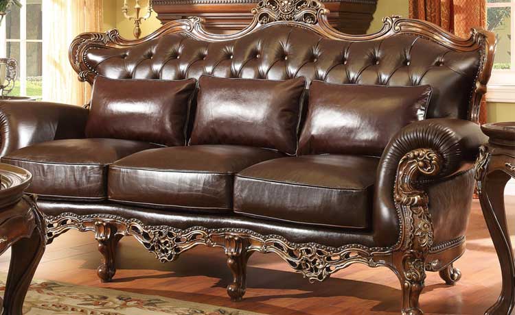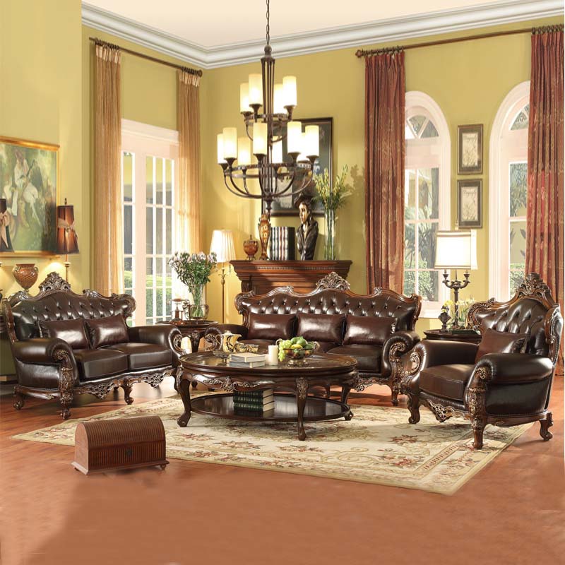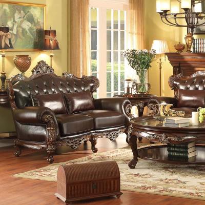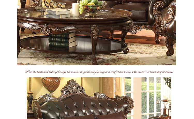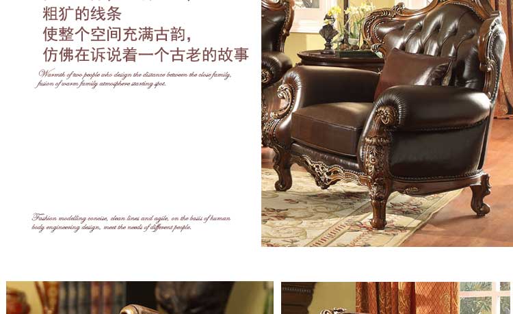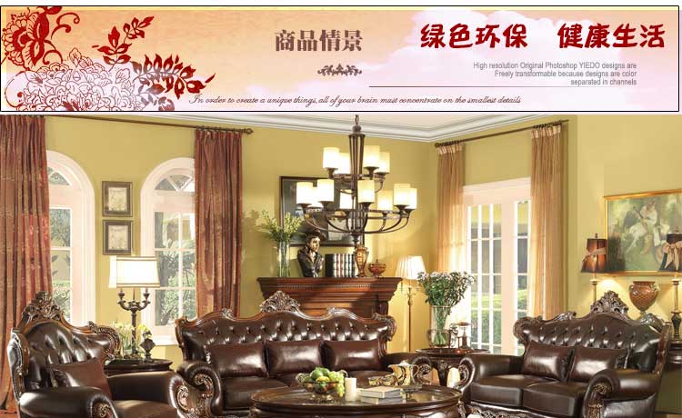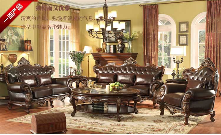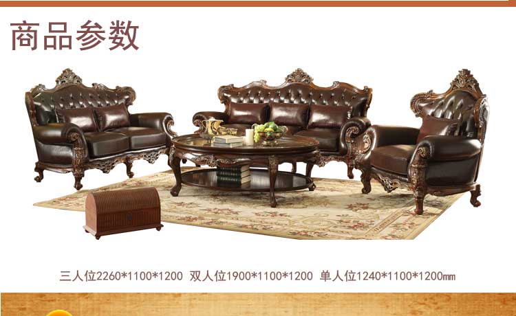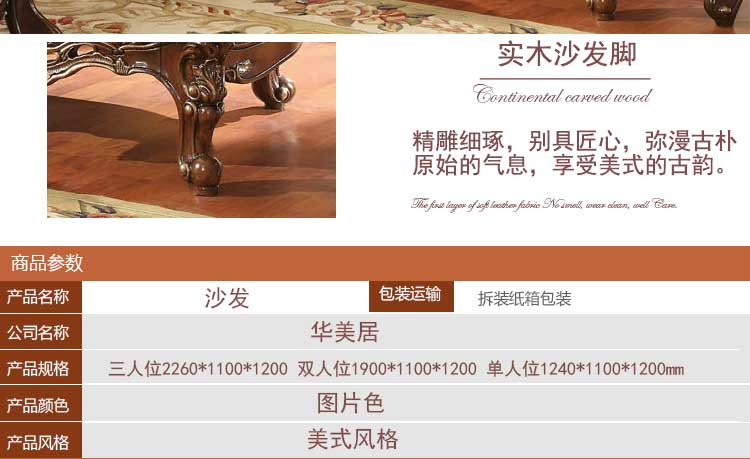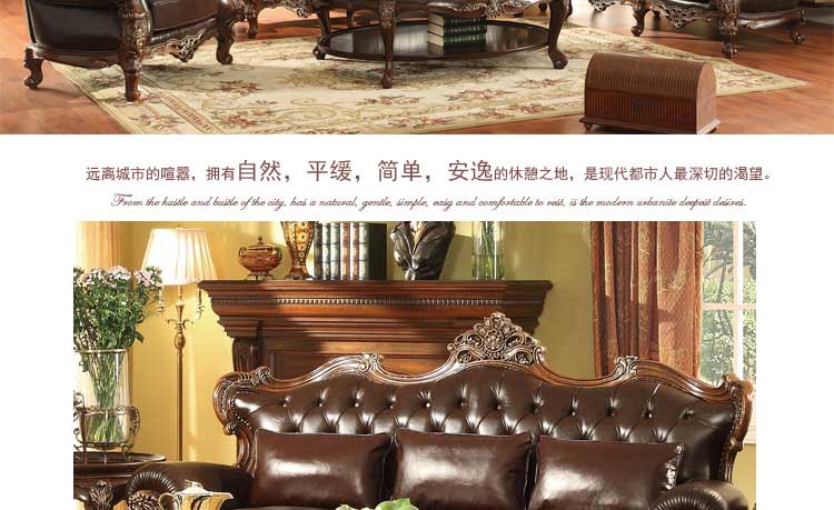 华美居 客厅沙发组合美式沙发组合皮艺木艺结合沙发 C-008