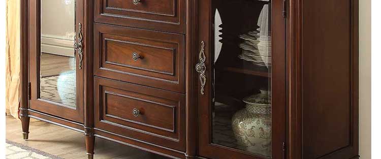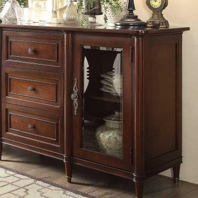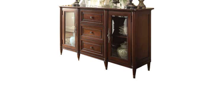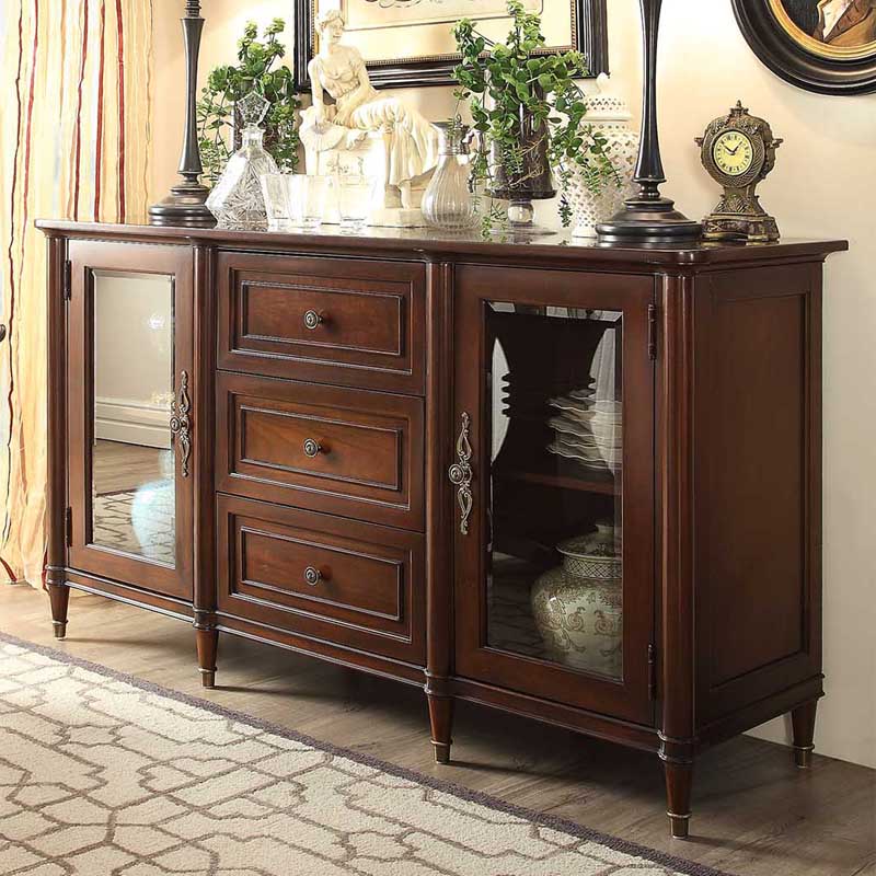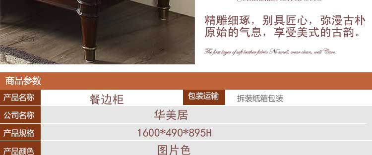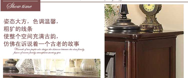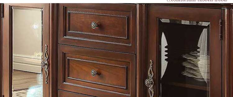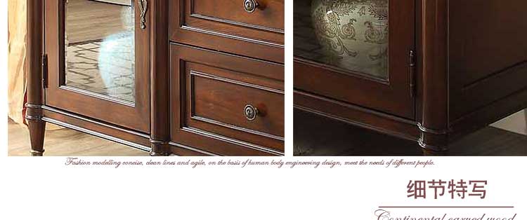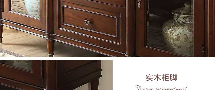 华美居 纯实木餐边柜 美式餐边柜橱 玻璃储物柜 B316N-180