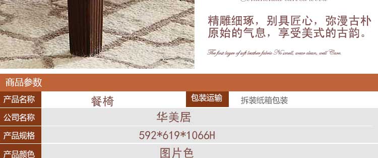 华美居 纯实木餐椅 美式 无扶手餐椅 靠背椅 书房椅饭椅 B316N-150