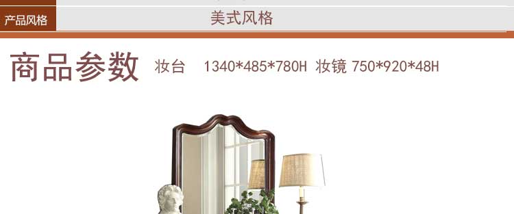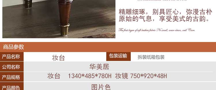 华美居 纯实木美式梳妆台 化妆台 美式梳妆桌妆镜组合桌子卧室全实木B316N-23