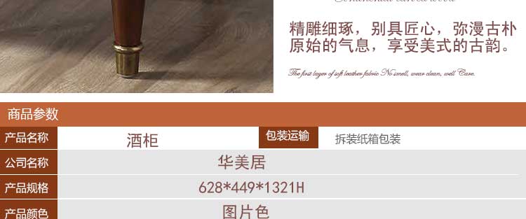 华美居 美式乡村全实木酒柜多功能储物柜单门带抽屉酒柜客厅家具B316N-38S