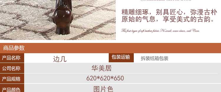 华美居 美式客厅家具实木角几边几边桌小圆几沙发茶几圆桌子 B316N-07N