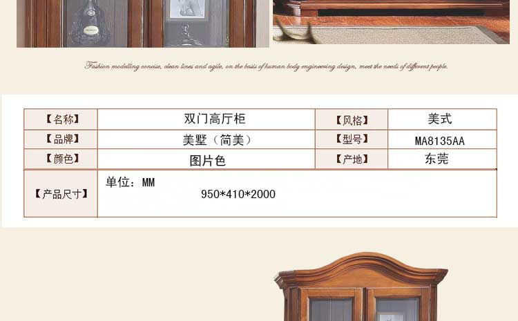 美墅家具美式实木双门酒柜储物柜两门展示柜隔断柜高档客厅装饰柜MA8135AA