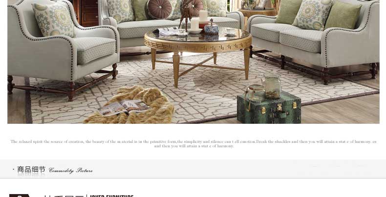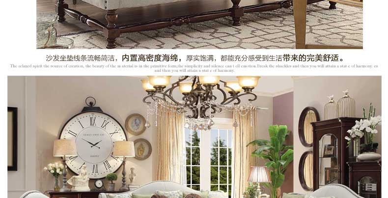 华美居 家具 美式布艺实木沙发组合 美式别墅客厅布艺沙发 805