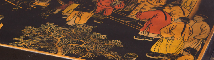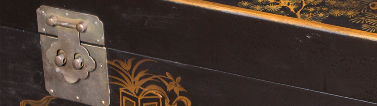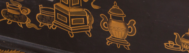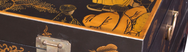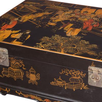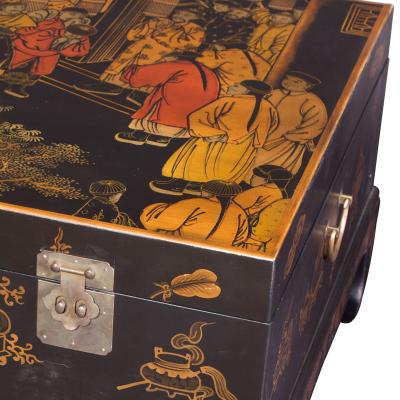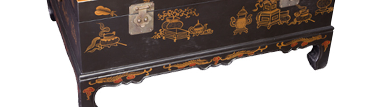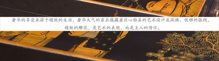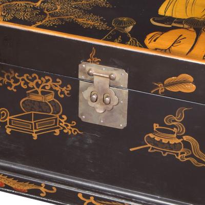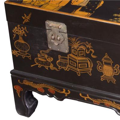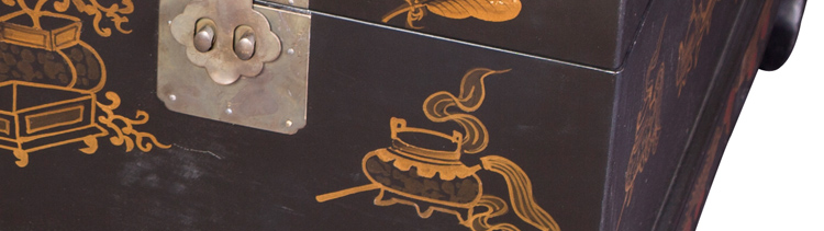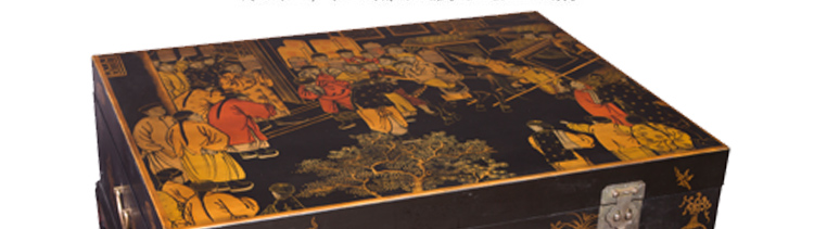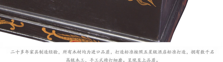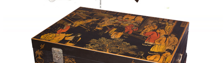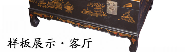 器道家具新款特价实木客厅茶几边几角几CH-6018黑色仿古画花箱形茶几