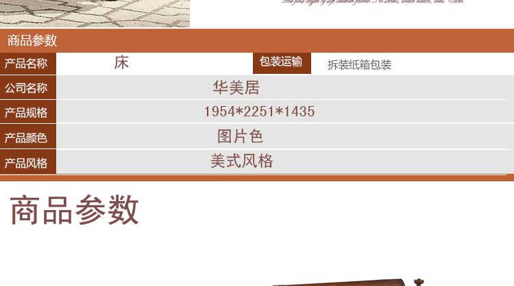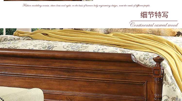 华美居 美式乡村双人床美式床大床家具 美式实木床 B308N-90/91/97