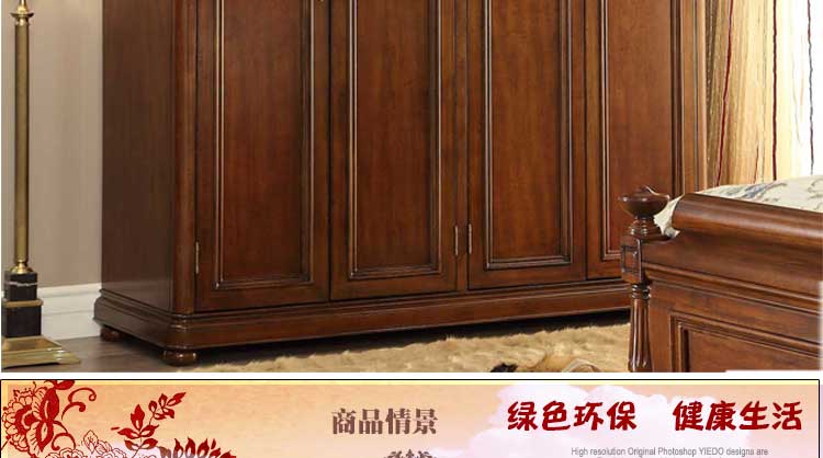 华美居 乡村简约卧室大容量衣橱复古鹅掌楸木衣柜组合 B308N-19