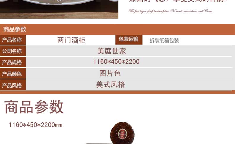 美庭世家 两门酒柜客厅储物柜组装餐厅厨房柜碗柜美式餐边柜 F02