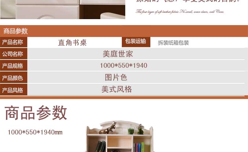 美庭世家 简约转角书桌 美式书桌书柜 书架组合写字桌 F09