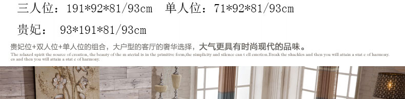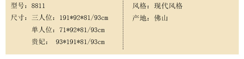 外围尺寸:3人位:191*92*81/93cm; 单人位:71*92*81/93cm; 贵妃: 93*191*81/93cm。