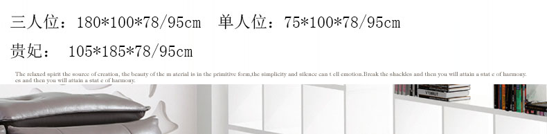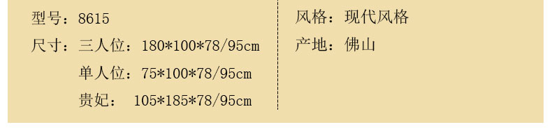 外围尺寸:3人位:180*100*78/95cm; 单人位:75*100*78/95cm; 贵妃: 105*185*78/95cm。