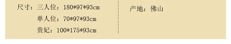 外围尺寸:3人位:180*97*93cm; 单人位:70*97*93cm; 贵妃:100*175*93cm。