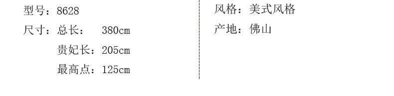 外围尺寸:总长:380cm; 贵妃长:205cm; 最高点:125cm。