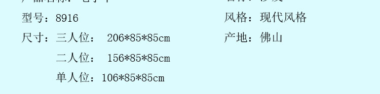 外围尺寸:3人位: 206*85*85cm; 2人位: 156*85*85cm; 单人位:106*85*85cm。