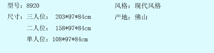 外围尺寸:3人位: 203*97*84cm; 2人位: 158*97*84cm; 单人位:108*97*84cm。