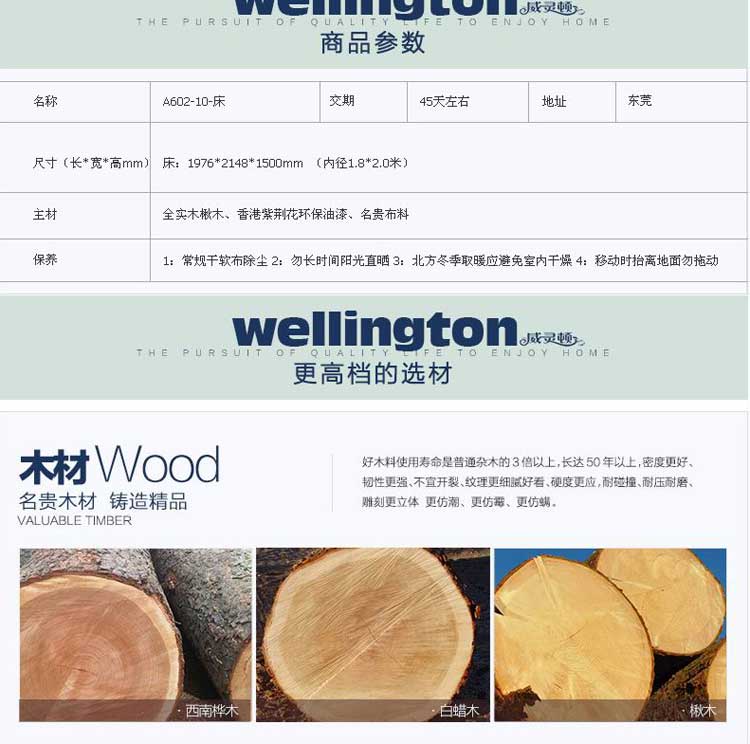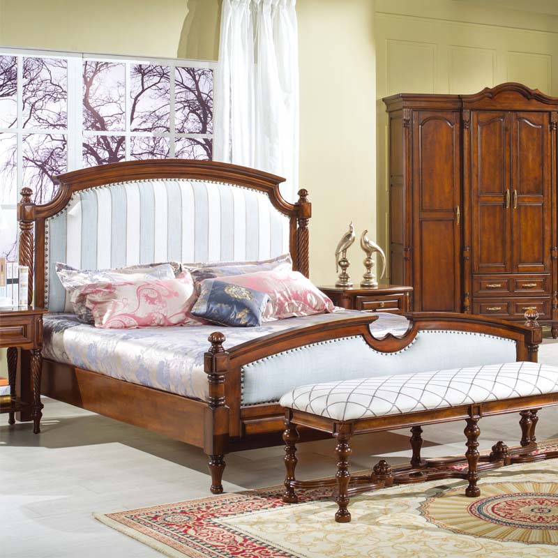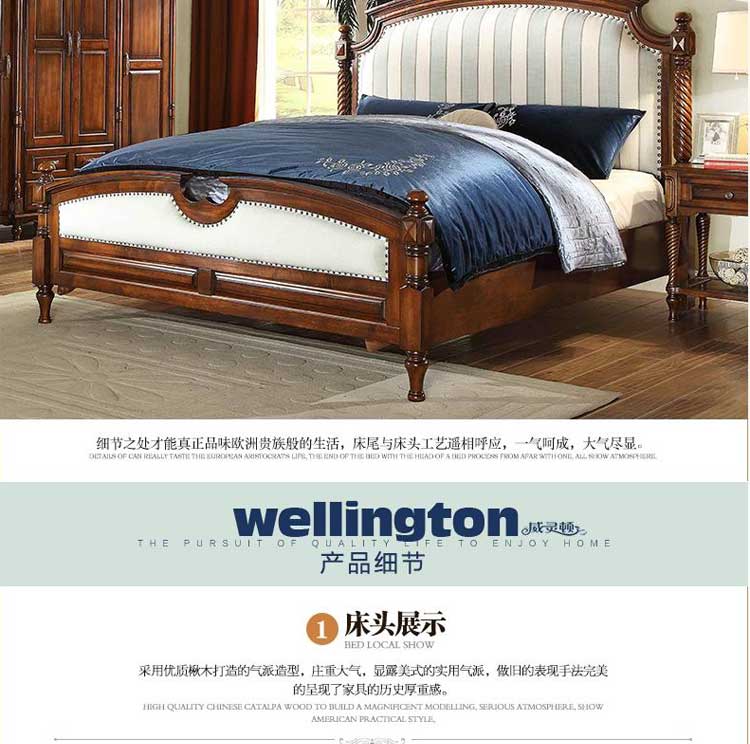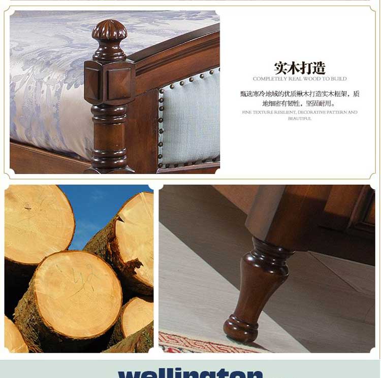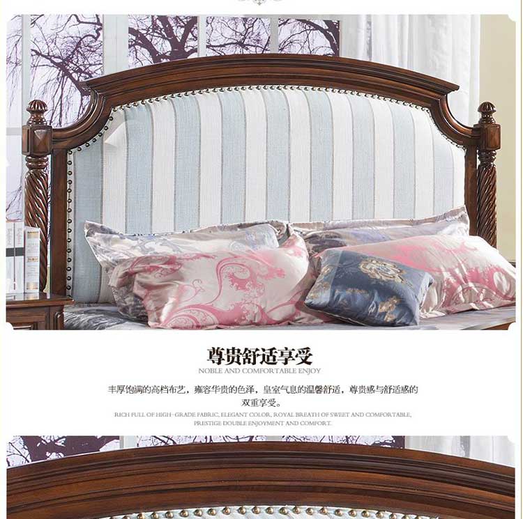 威灵顿美式乡村双人床1.8米欧式实木床田园布艺简美公主床A602-10