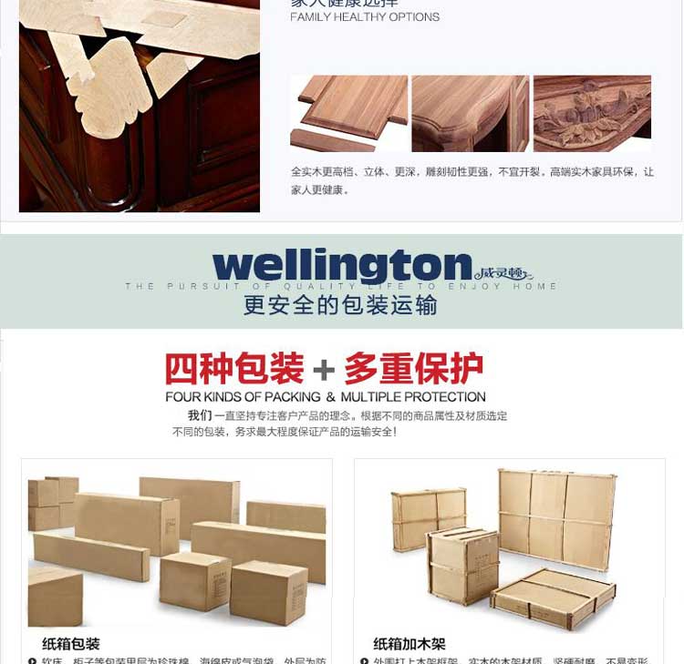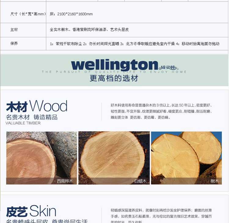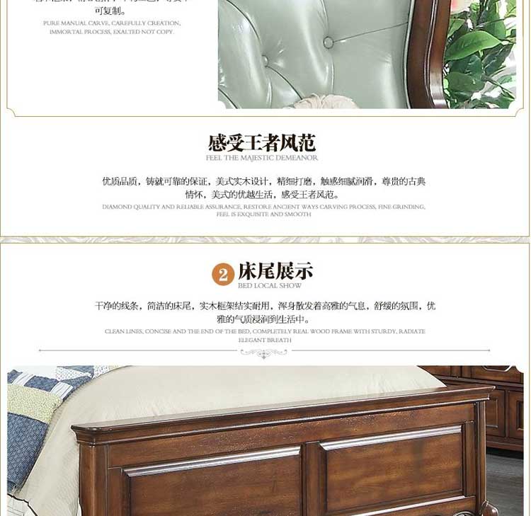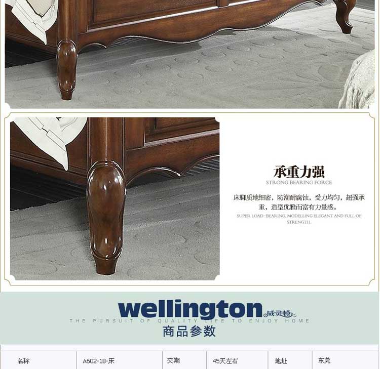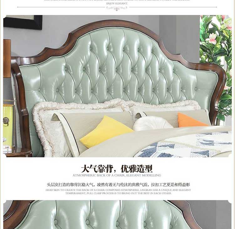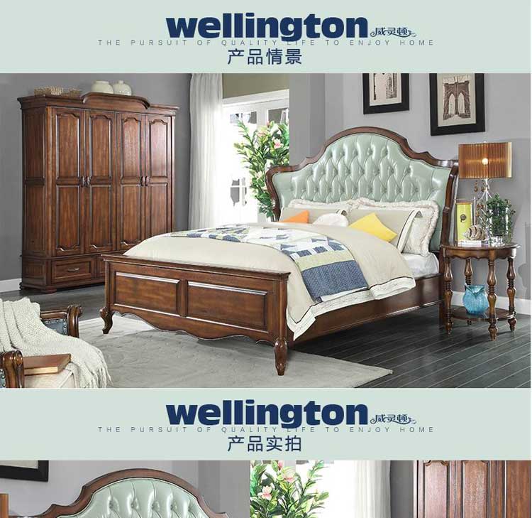 威灵顿美式全实木床欧式真皮床双人床1.8米卧室简美公主床A602-18