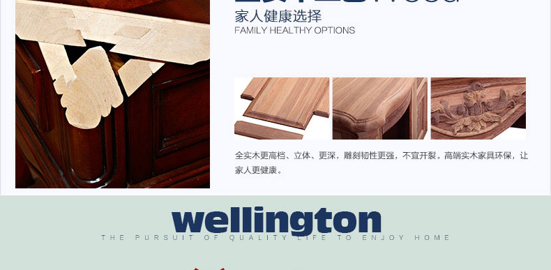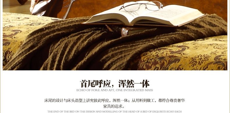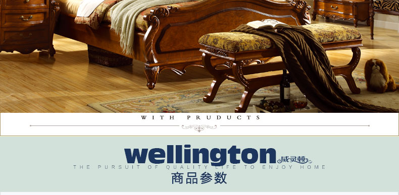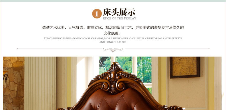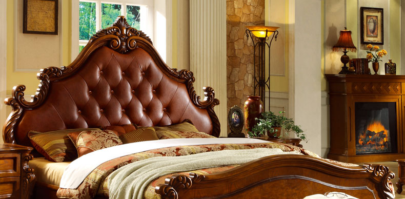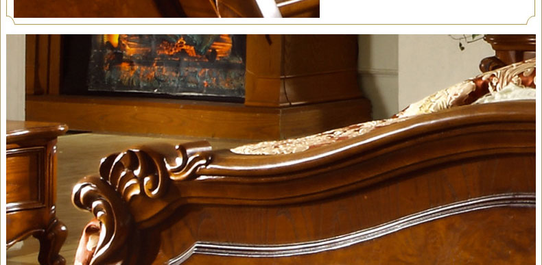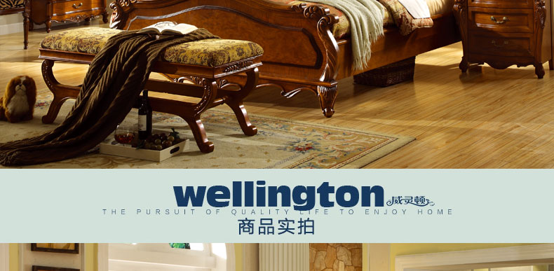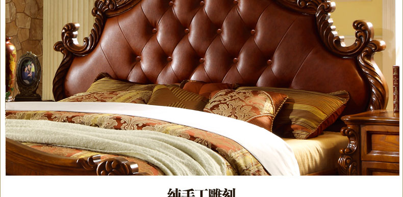 威灵顿美式风格仿古乡村实木雕花卧室大床大小户型奢华双人床A601-6