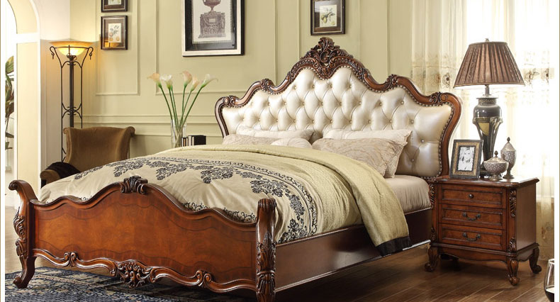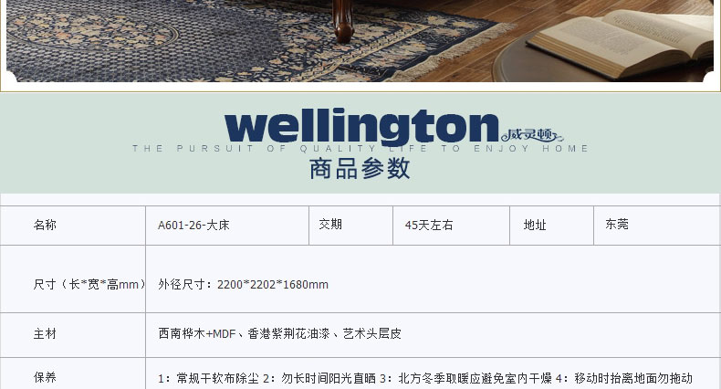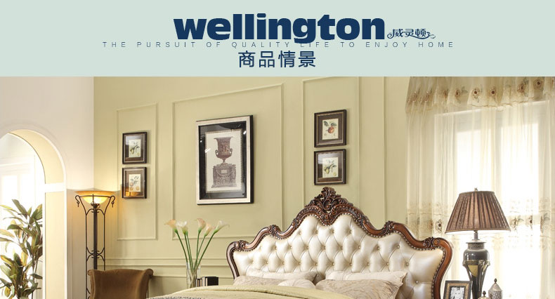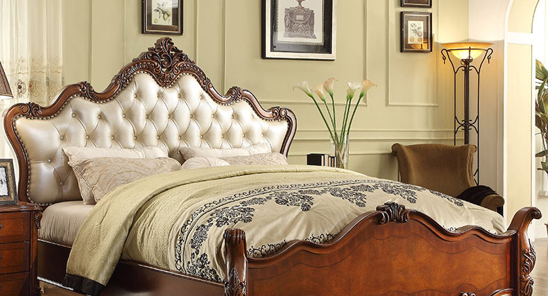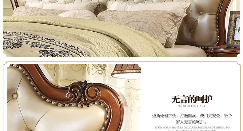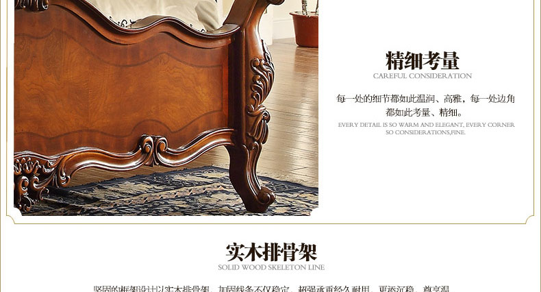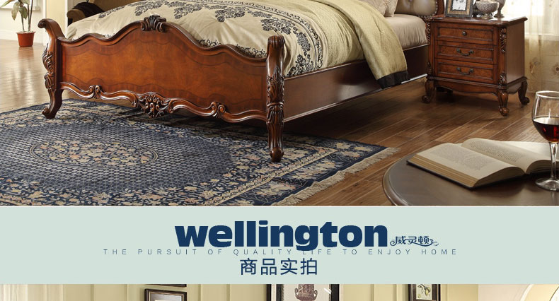 威灵顿卧室美式乡村风格实木雕花奢华典雅双人床实木大床婚床A601-26