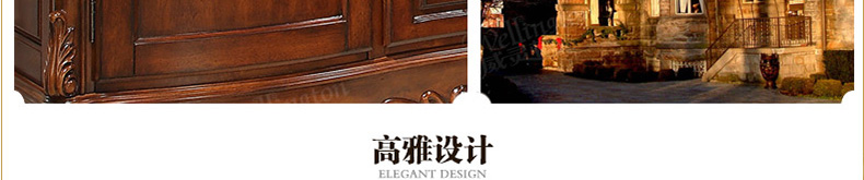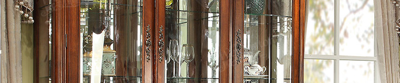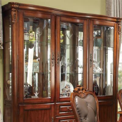 威灵顿欧式三门玻璃酒柜美式实木酒柜客厅装饰柜高端展示柜J603-7