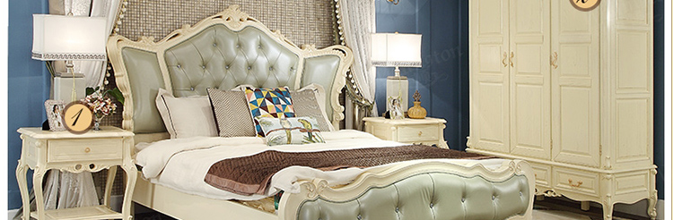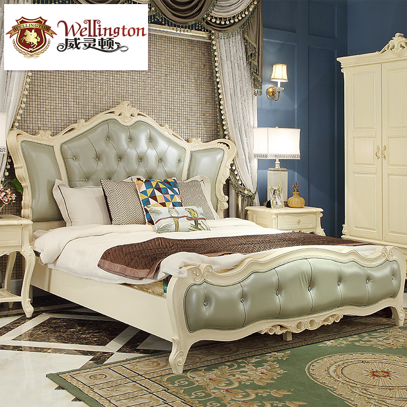 威灵顿 欧式床双人床1.8米实木床法式公主床真皮卧室婚床A605-1