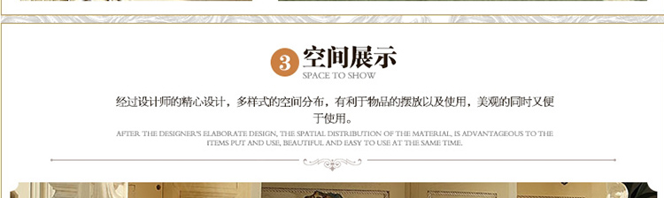 简欧风格从简单到繁杂、从整体到局部,精雕细琢,镶花刻金都给人一丝不苟的印象。一方面保留了材质、色彩的大致风格,仍然可以很强烈地感受传统的历史痕迹与浑厚的 文化底蕴,同时又摒弃了过于复杂的肌理和装饰,简化了线条