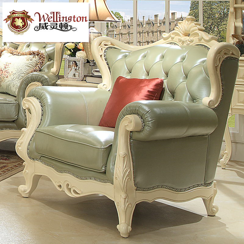 威灵顿 高档欧式真皮沙发组合简约法式客厅大户型实木沙发X605-2