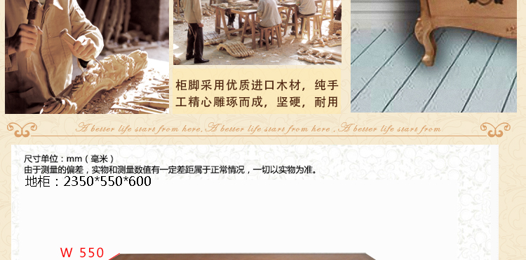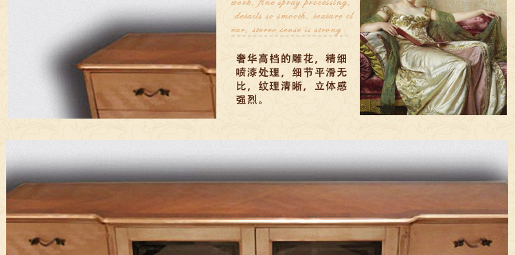 手工雕刻 复古拉手 实木脚 半开放式抽屉 经典组合