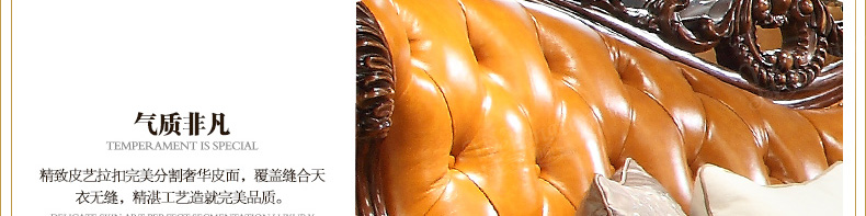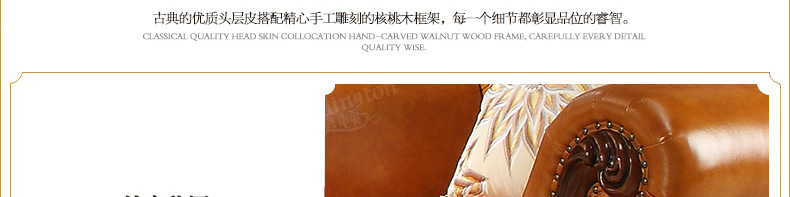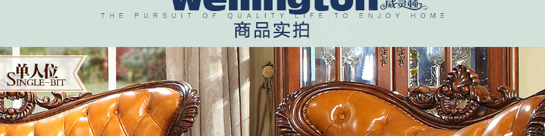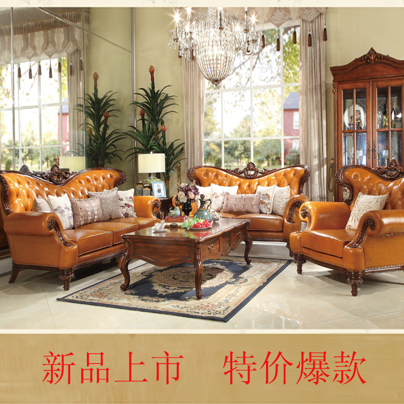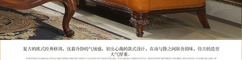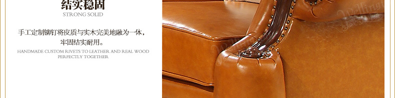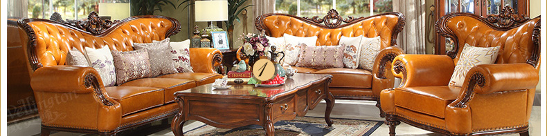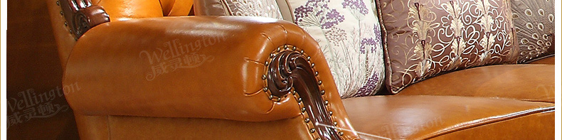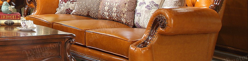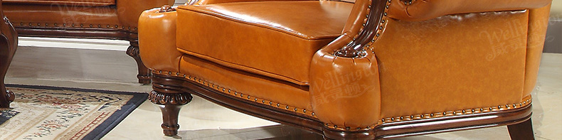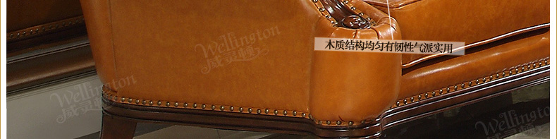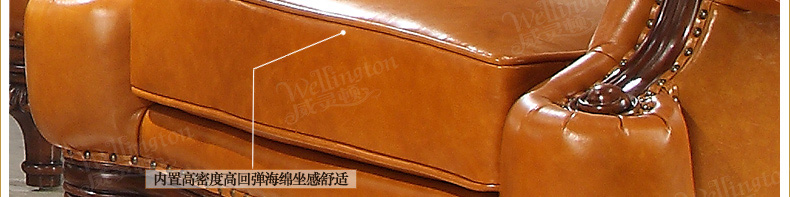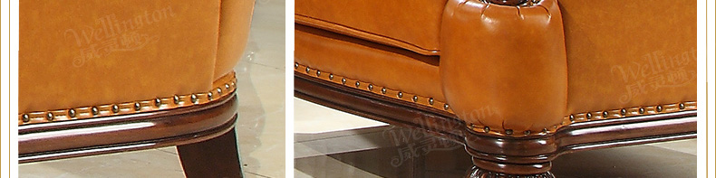 威灵顿欧式真皮沙发123组合简美小户型客厅美式全实木沙发X603-8