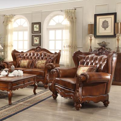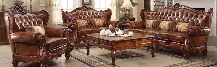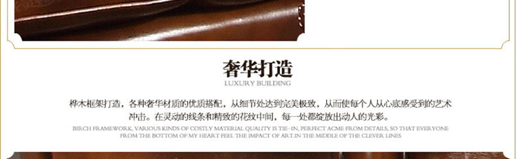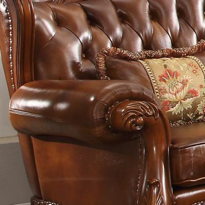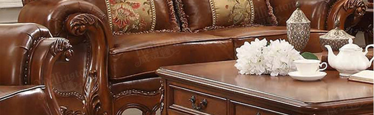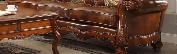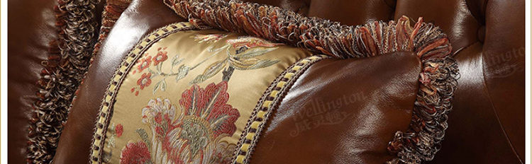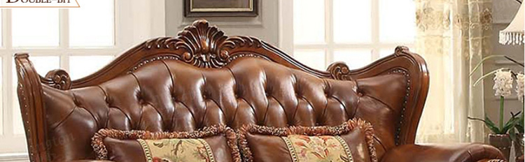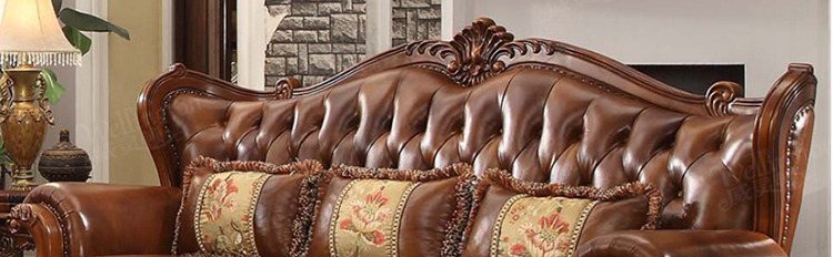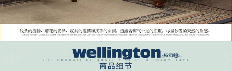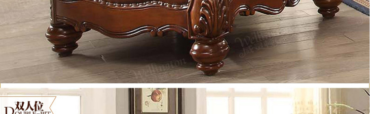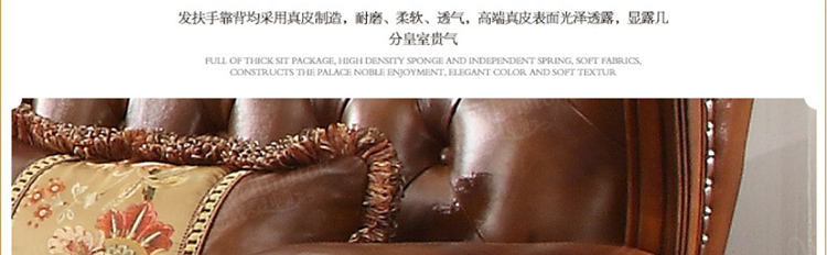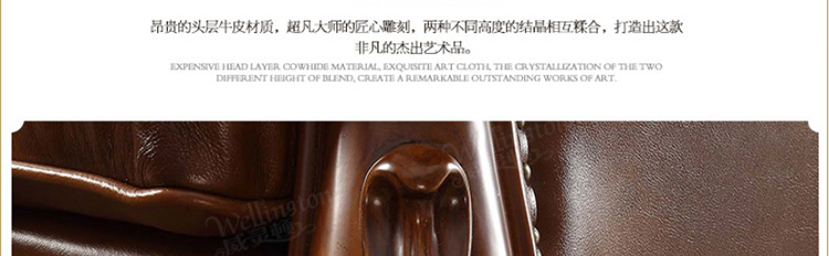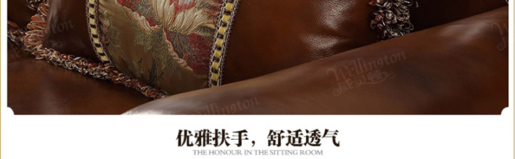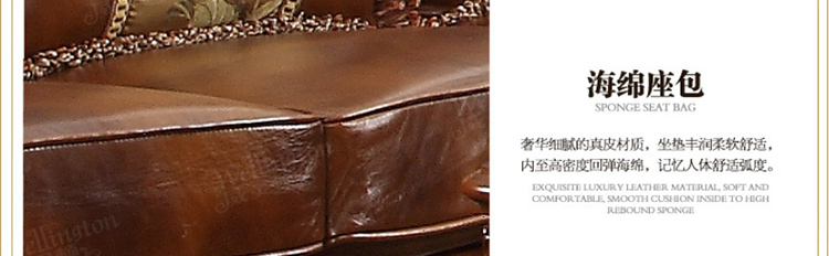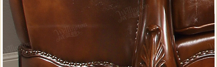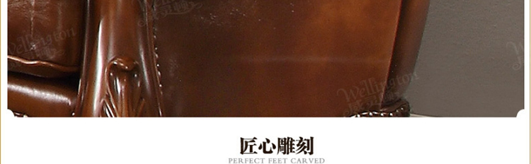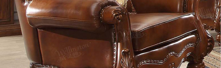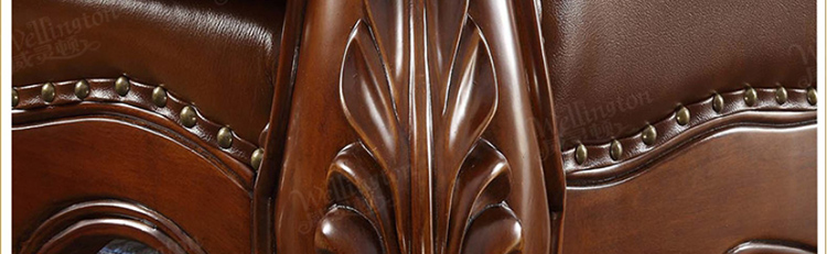 威灵顿 美式真皮沙发组合客厅大户型复古欧式实木雕花沙发X601-26