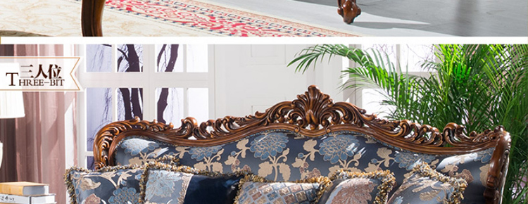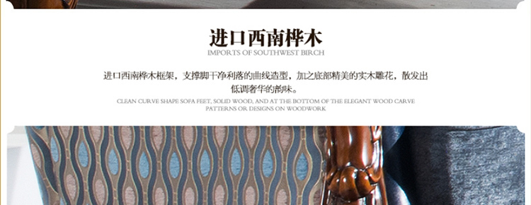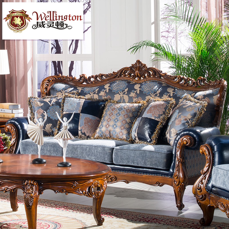 威灵顿美式布艺沙发组合客厅复古欧式大小户型实木雕花沙发X601-29