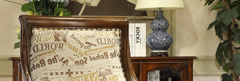 威灵顿美式风格实木书房舒适带扶手靠背椅书房书椅Y602-1