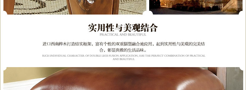 威灵顿家具美式皮餐椅实木复古休闲椅咖啡椅简约书椅H601-3