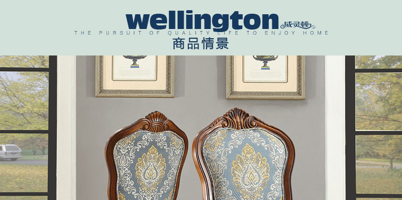威灵顿家具美式实木餐椅简约布艺休闲扶手椅咖啡椅书椅H601-5
