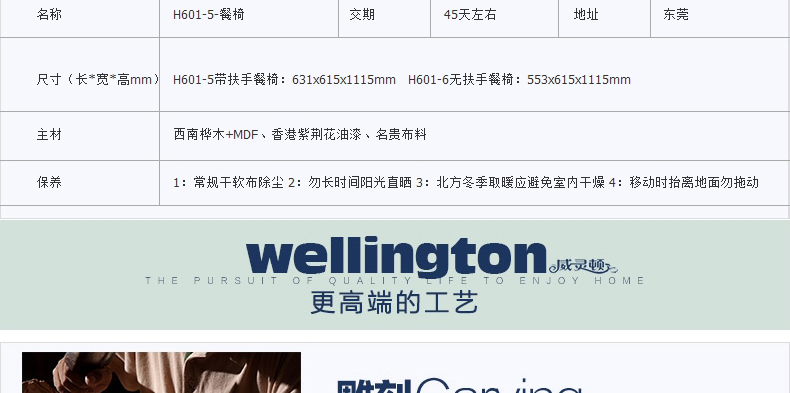 外围尺寸:H601-5扶手椅631x615x1115H; H601-6餐椅553x615x1115H(一箱两把)。