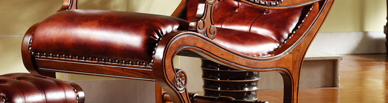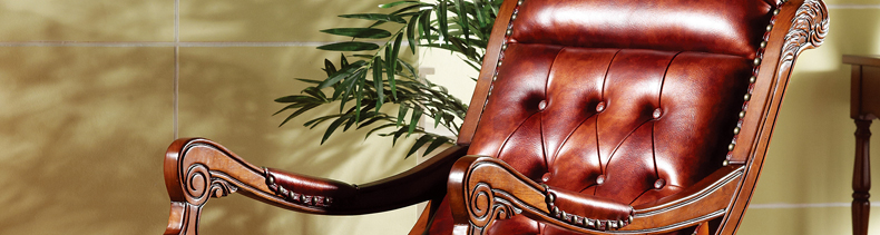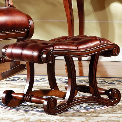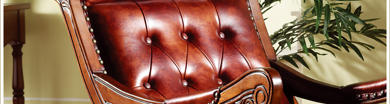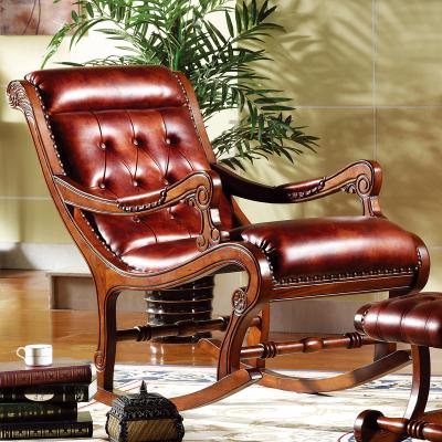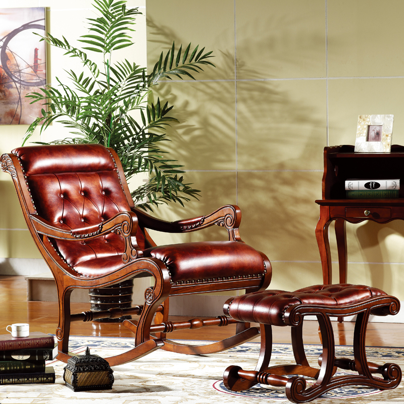 威灵顿美式乡村风格实木皮质摇椅休闲椅舒适高档摇椅脚踏H601-7