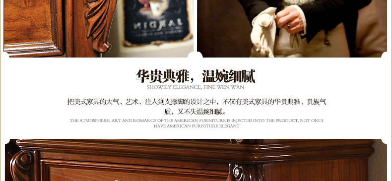 威灵顿实木客厅储物酒柜收纳收藏酒柜储物柜美式风格仿古酒柜J601-3
