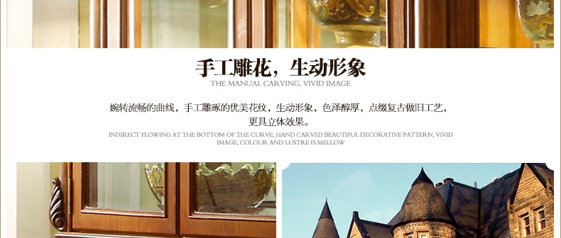 威灵顿奢华客厅时尚酒柜美式风格简约实木雕花酒柜储物酒柜J601-6