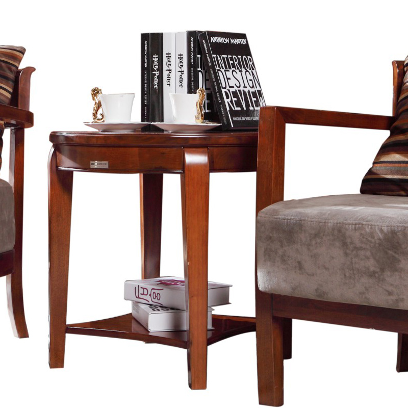 美庭世家 中式实木圆形中式原木阳台茶几小圆桌咖啡桌 H02