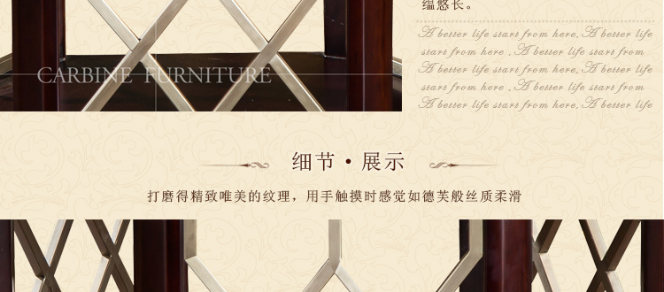 秉承灵感无限的美学创意思想,将艺术和传统文化融入家具设计,每一个细节都表现出家具的品味和自我的风格,折射出家具的文化和强烈个性。朴实简洁不华丽,没有繁多琐碎的花式设计,打造一个时尚完美的家。