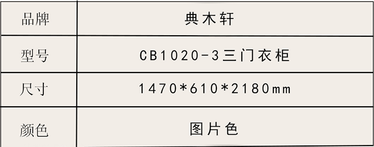 典木轩 新中式衣柜整体衣橱木质大衣柜三门柜子家具 CB1020-3