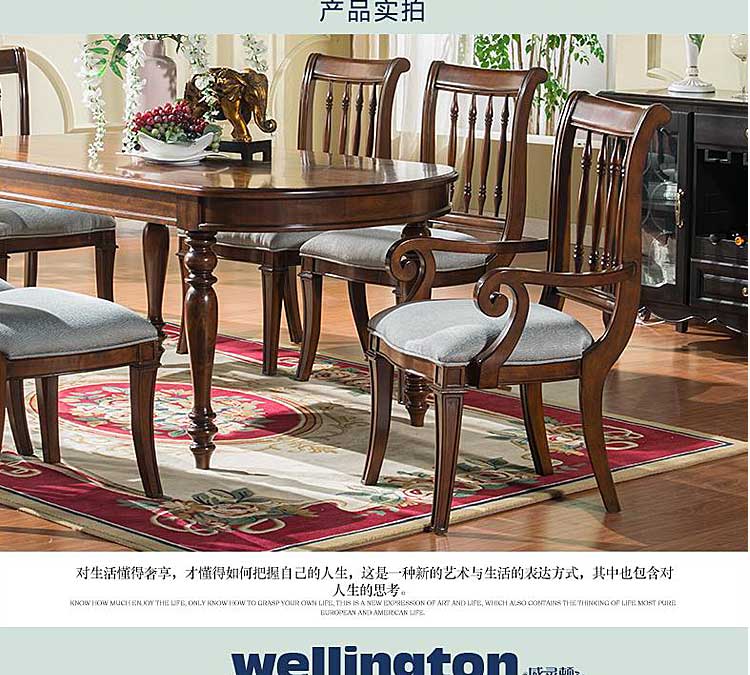 威灵顿 美式乡村实木餐椅美式靠背椅扶手椅休闲咖啡椅书椅H602-3