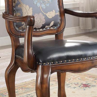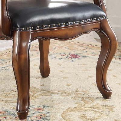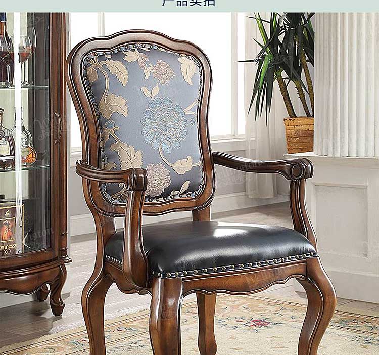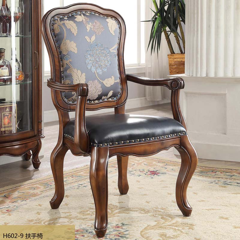威灵顿美式餐椅实木美式复古书椅真皮软包咖啡椅洽谈扶手椅H602-9