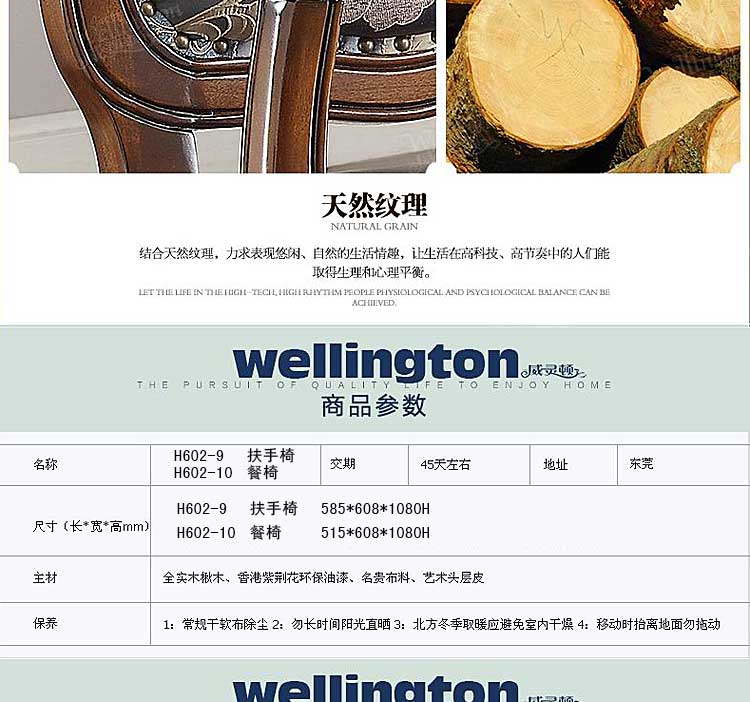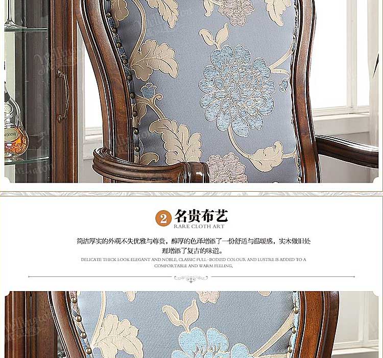 外围尺寸:H602-9扶手椅(皮+布)585*608*1080H H602-10 餐椅(皮+布) 515*608*1080H
