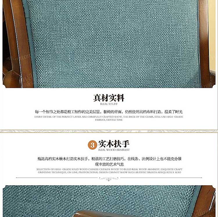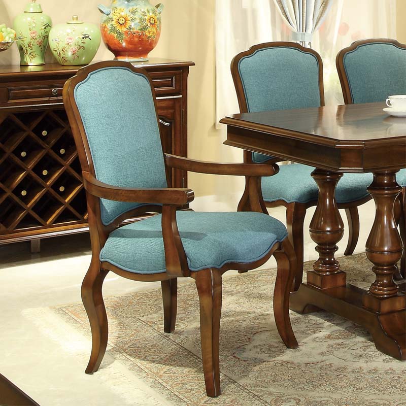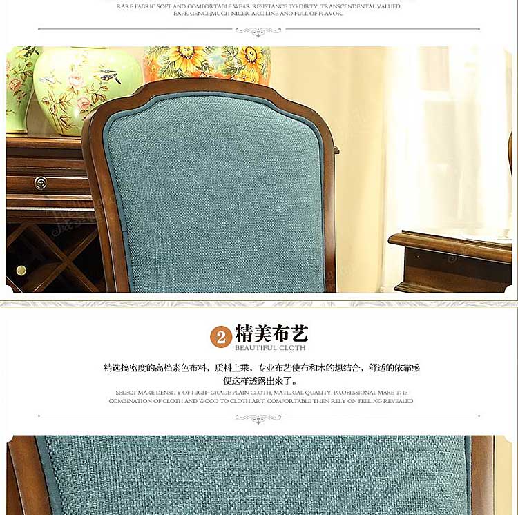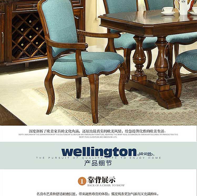 威灵顿 美式实木餐椅简美美式布艺餐椅咖啡椅靠背扶手椅H602-22