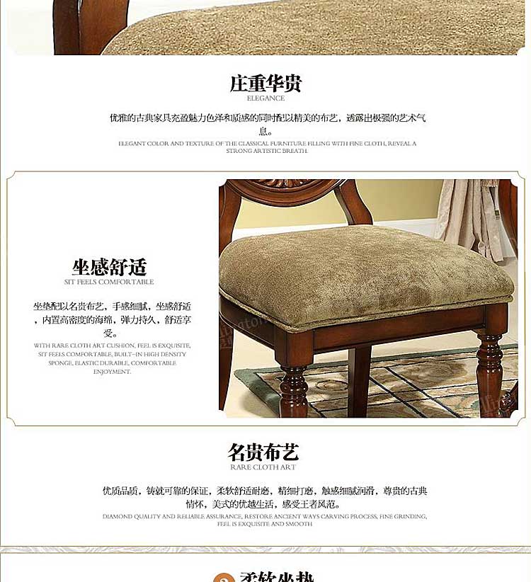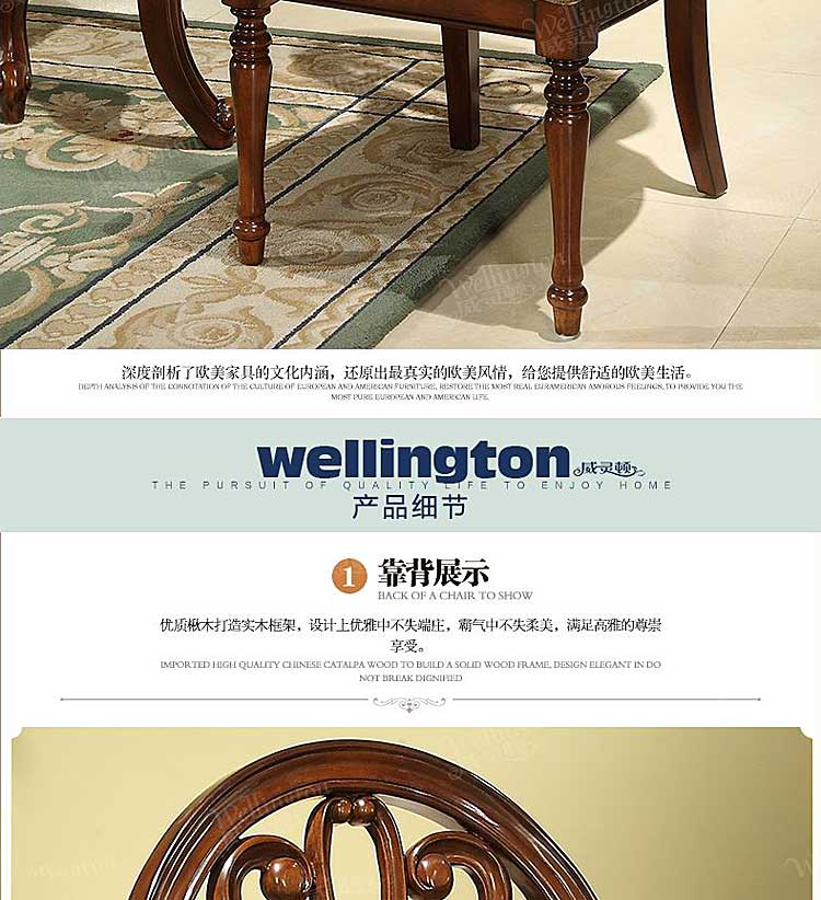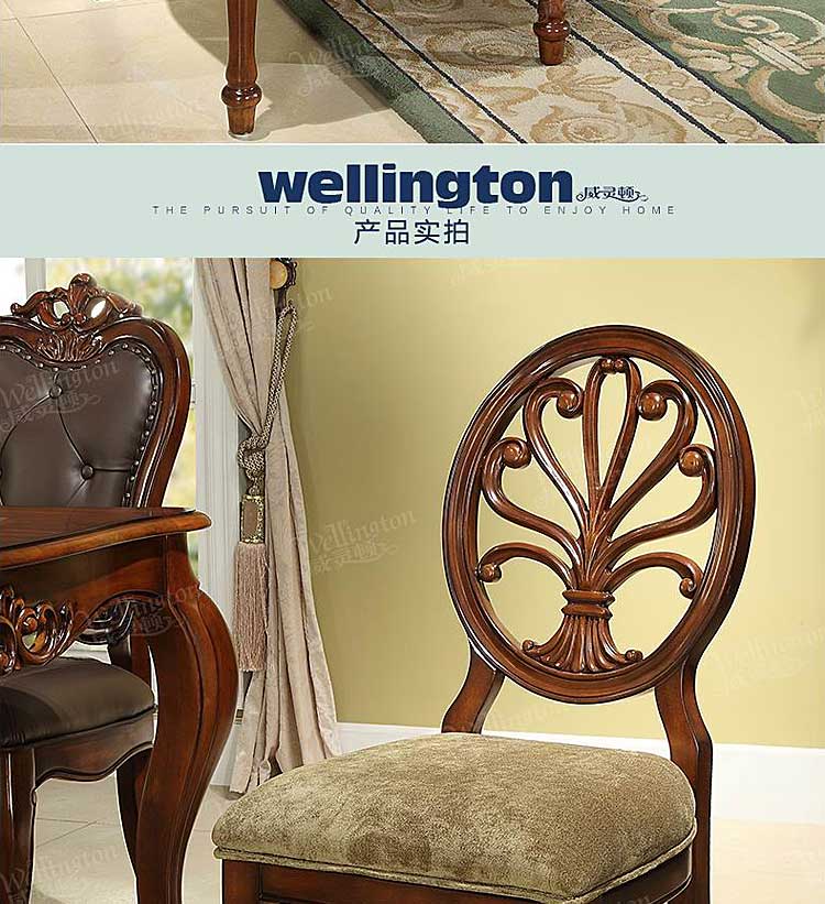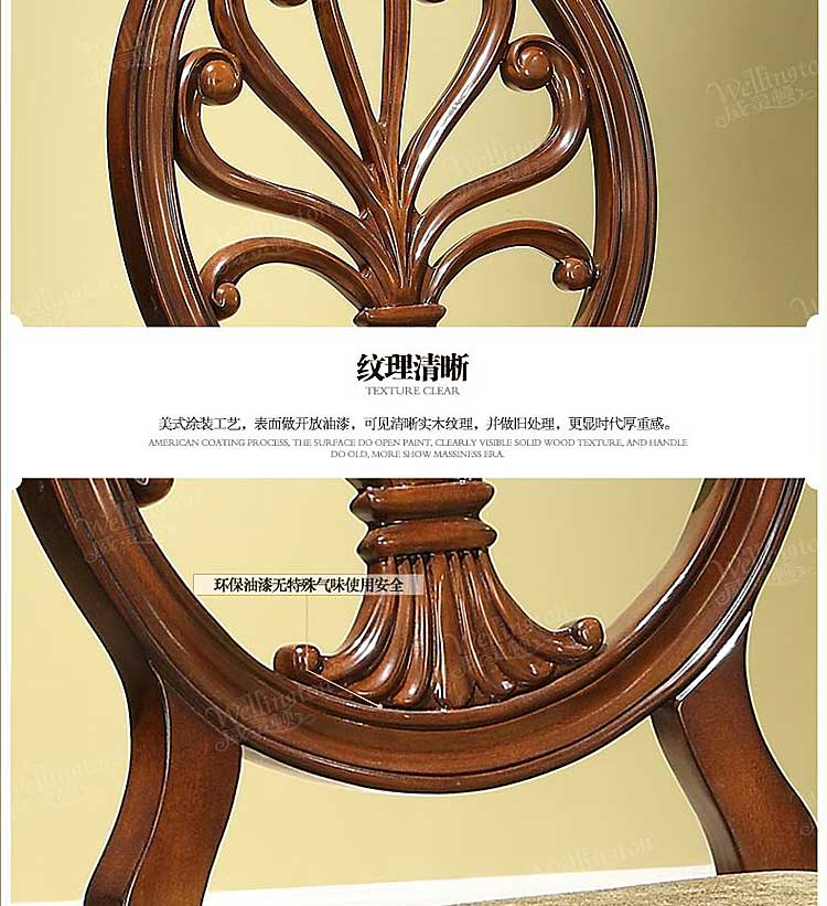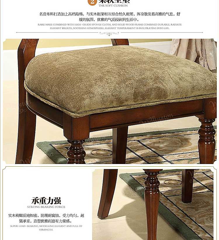 威灵顿 美式乡村餐椅布艺美式实木餐椅靠背椅咖啡椅书椅H602-27