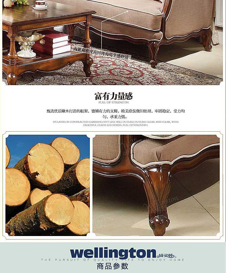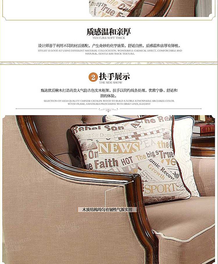 威灵顿 美式乡村布艺沙发组合小户型客厅复古美式简美沙发X602-15