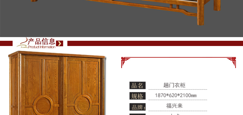福兴来中式风格卧室趟门衣柜大容量储物衣柜收纳衣柜YG-Y02