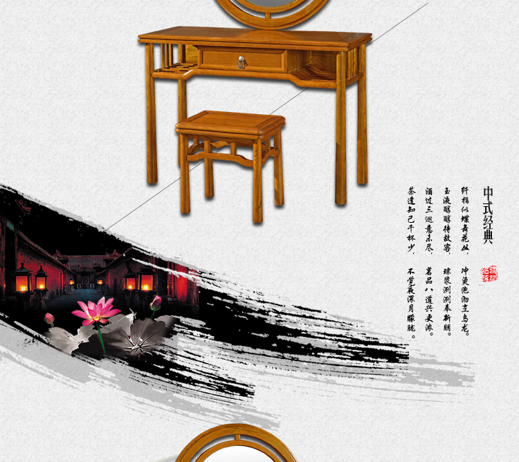 福兴来卧室中式风格简约创意实木创意带抽简易妆台Z-Y01