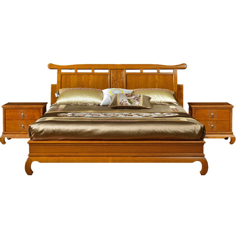 福兴来中式风格卧室实木床 大气双人床 A-M01胡桃木木质床